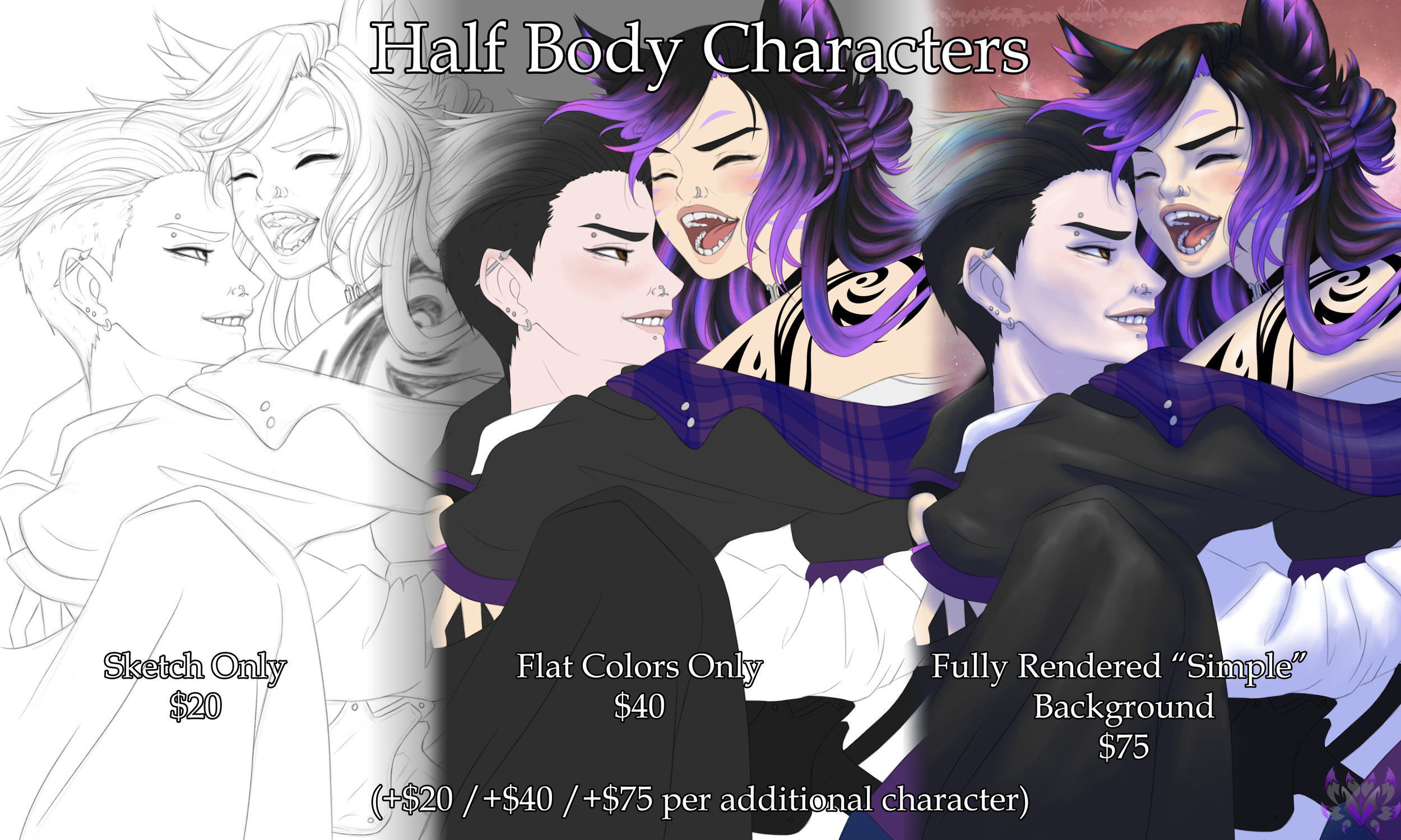 Greetings! Thank you for being interested in my work! This is just a range of where your commission will be based, so prices may not be exactly the same when you’re given a quote.